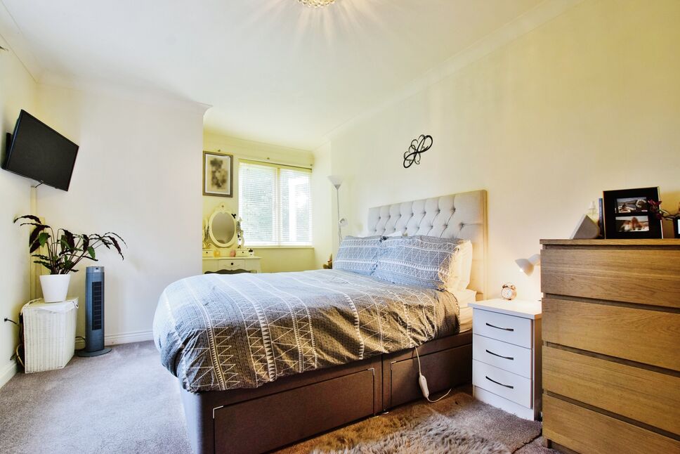 With windows to the side and rear elevations. Wall TV point. Radiator, L-shape fitted wardrobes.