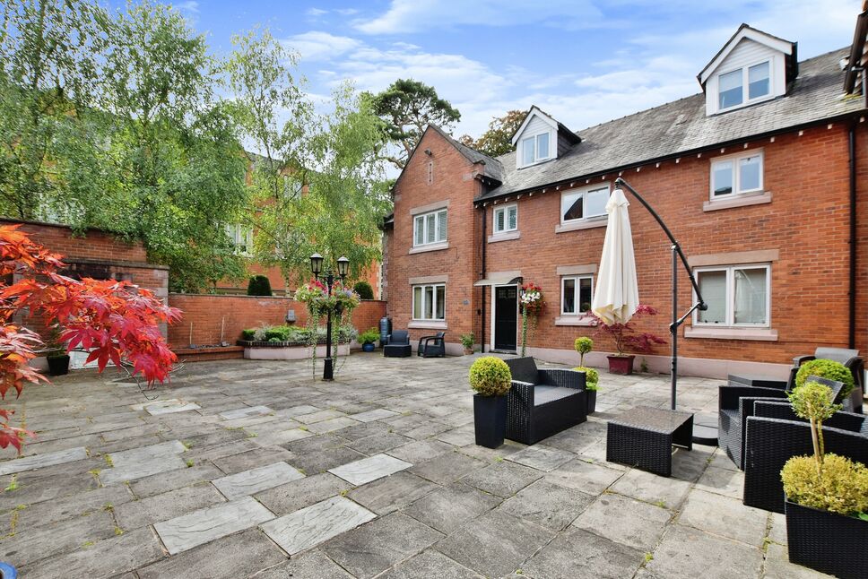 Flagged patio with space for a table and chairs. To the front of the mews is a pave courtyard, providing access to all properties, and a lovely seating area. A private garden for the residents of the mews, and grounds surrounding the mews and hall.