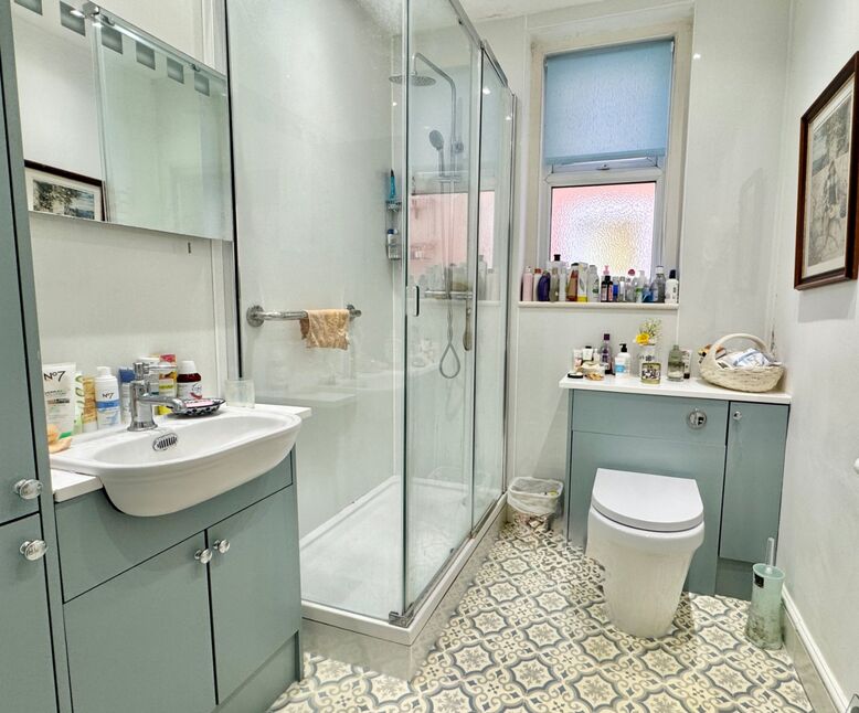 A wonderful ground floor apartment with beautiful PRIVATE GARDEN, OFF STREET PARKING and a SHARE OF THE FREEHOLD, located in a popular tree-lined avenue in the favoured West End of Folkestone. The bright and airy extended apartment boasts high ceilings, large windows and generously proportioned elegant rooms. The accommodation features an impressive living room leading through to a bright study area and dining room with roof lantern and French doors out to the rear garden. Further accommodation includes a stylish modern shower room; kitchen/breakfast room; a large main bedroom with extensive fitted wardrobes and a second double bedroom (with access to either a third bedroom or dressing room). To the front of the property there is an attractive private garden and block paved driveway providing off street parking for two vehicles (possibility to install EV point). To the rear is a delightful walled garden with well stocked borders, patio area, garden shed and wonderful insulated TIMBER GARDEN CABIN (4m x 3m) with air conditioning and double glazed windows and doors. The property also includes a large cellar area with good ceiling height, currently accessed via a temporary ladder from the communal hallway. Internal viewing of this wonderful home comes highly recommended to fully appreciate all on offer.