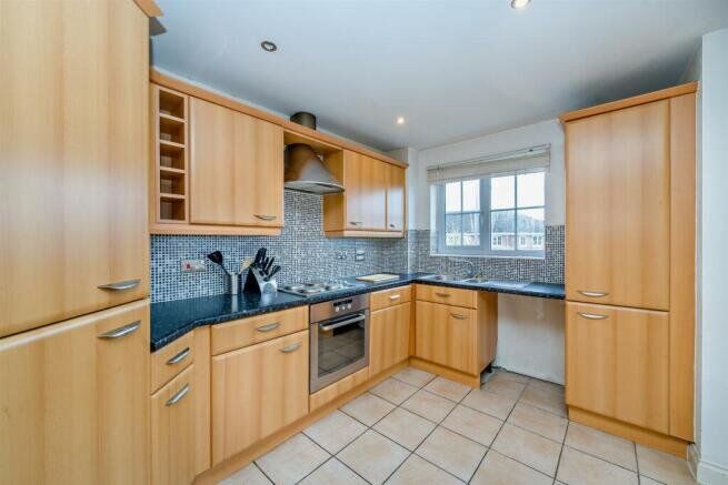 Fitted with matching, wall, base and drawer units with contrasting work surface, integrated fridge and freezer, dishwasher, electric oven with electric hob, sink and drainer unit, tiled splash backs, double glazed window.