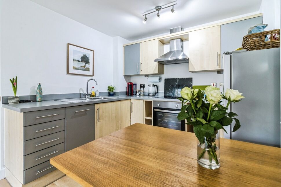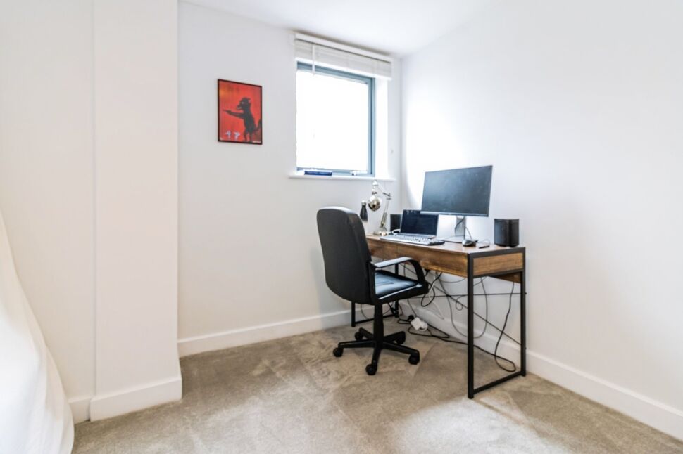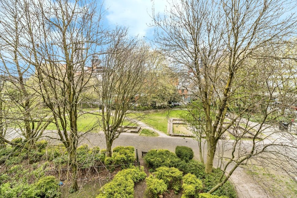 A spacious open-plan room with Juliet-style balcony enjoying a pleasant outlook over the adjacent Castlefield Urban Heritage Park along with a further window providing additional natural light. Wood-effect flooring and electric heating. Kitchen with fitted base and wall units, integral electric oven and hob with extractor hood, 1.5 bowl sink, integral dishwasher.