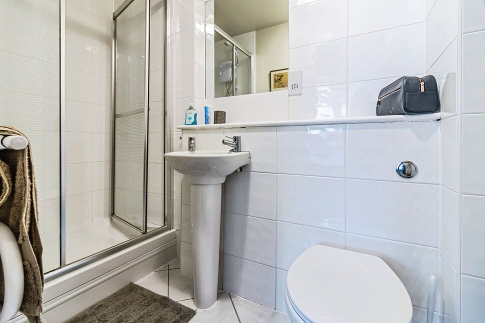 Shower cubicle, wash basin, WC, heated towel rail.