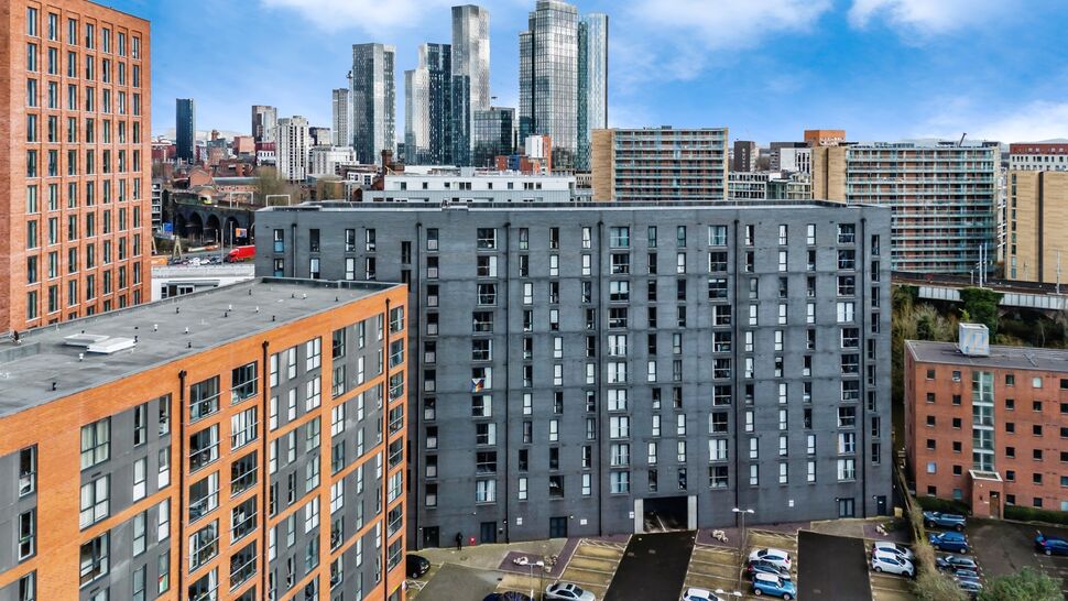 This superb 2 double bedroom apartment benefits from a full-width balcony offering stunning views over the River Irwell towards the city beyond. Immaculately presented throughout, further consisting of a spacious open-plan living area/kitchen, ensuite, main bathroom and secure parking space. Popular development with concierge facility. EWS1 form available (B1 rating). EPC Rating C.