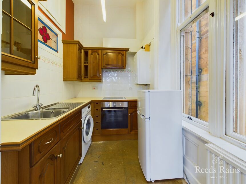 Offering wall and base units with work top surface areas with part tiled walls and incorporating an inset sink unit. Built-in electric over and hob. Space for a fridge / freezer. Window to the side elevation . Wall mounted gas boiler.