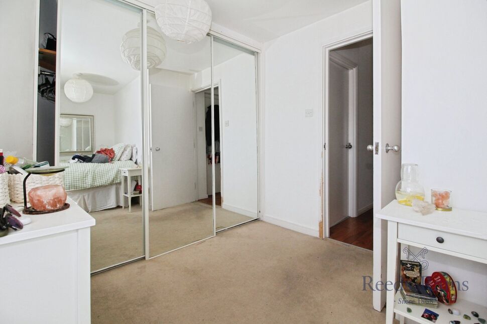 Main bedroom to the far of the apartment, fitted wardrobes and space for double bed and drawers.