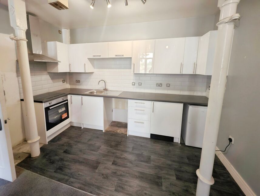 The lounge has a window to the rear giving views over Halifax town centre. The kitchen provides fitted wall and base units, a sink and drainer unit, electric oven and hob, space for an under counter fridge and plumbed for a washing machine.