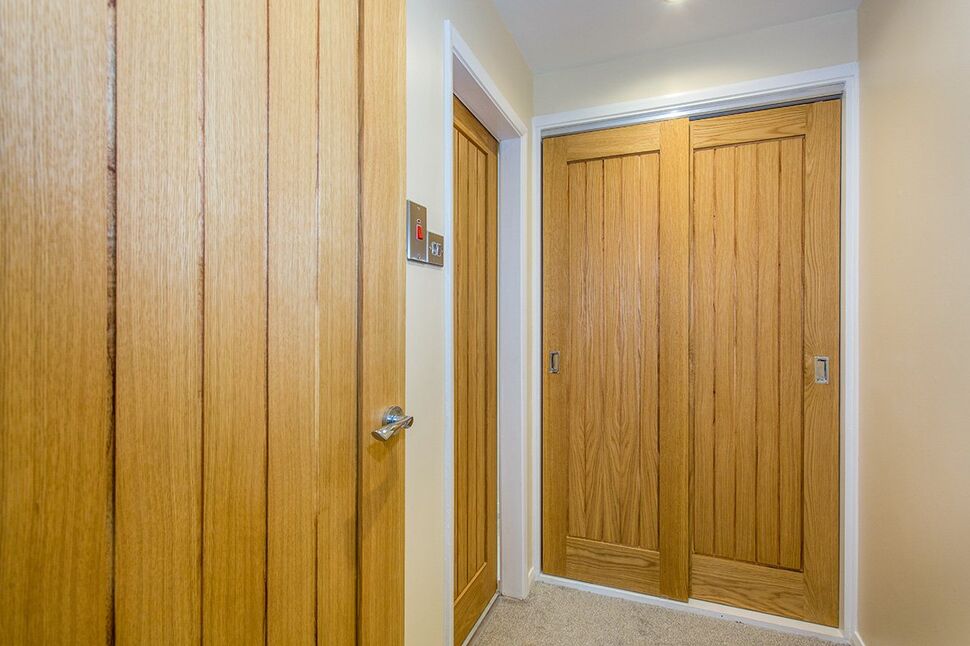 Wall mounted electric heater. Built in wardrobe providing storage space. Ceiling light point. Door to the shower room.