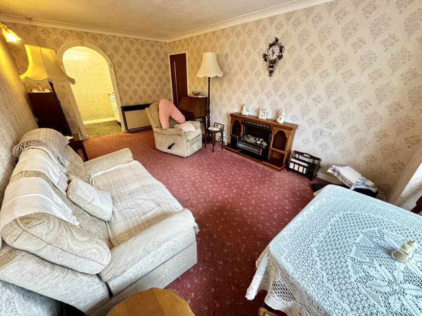 Light and bright room with a window with view's towards St Andrews Church. Wall mounted electric heater. Open plan to:
