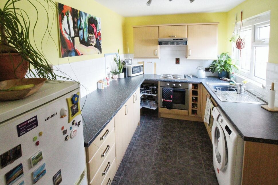 Fitted with a comprehensive range of base and wall units with work surface over and inset sink unit with drainer. integrated appliances consists electric oven, four ring hob with extractor hood over, complementary wall tiling, space and plumbing for washing machine, space for fridge freezer, double glazed window to the rear elevation and walk in storage cupboard.