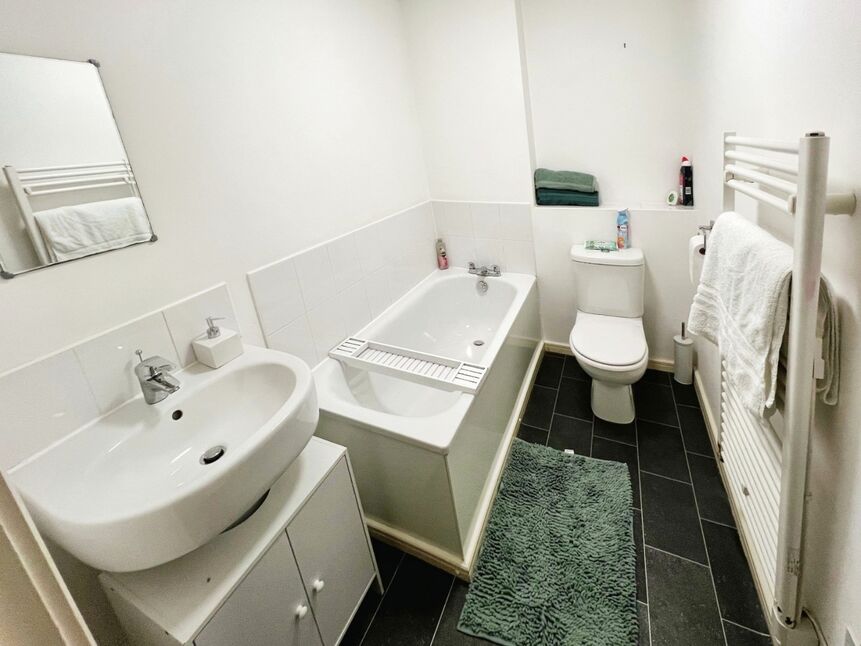 The two double bedrooms provide comfortable living spaces, with the main bedroom benefitting from an en-suite bathroom. Both bathrooms are elegantly designed, with the first bathroom featuring a heated towel rail and the second bathroom offering a spacious layout along with a heated towel rail.