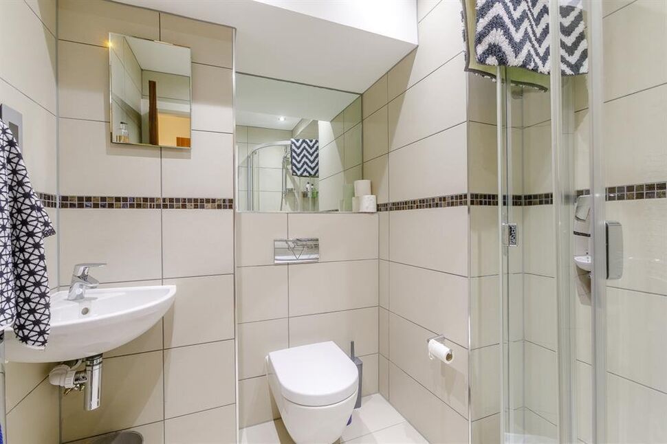 Secure communal entrance at street level. The apartment can be accessed via lift or stairs.