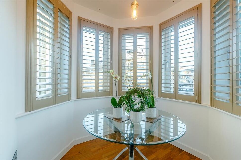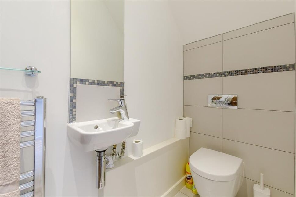 Wooden-style flooring, recessed downlighters, heater, understairs cupboard.
