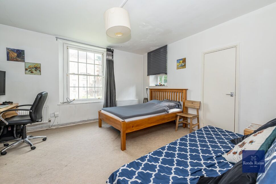 Window to rear overlooking communal gardens, carpet as laid and radiator.