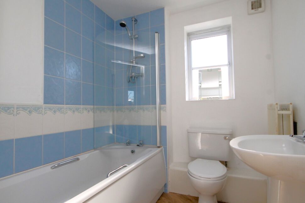 The bathroom is fitted with a white suite including panelled bath with shower over, low level wc and wash basin.
