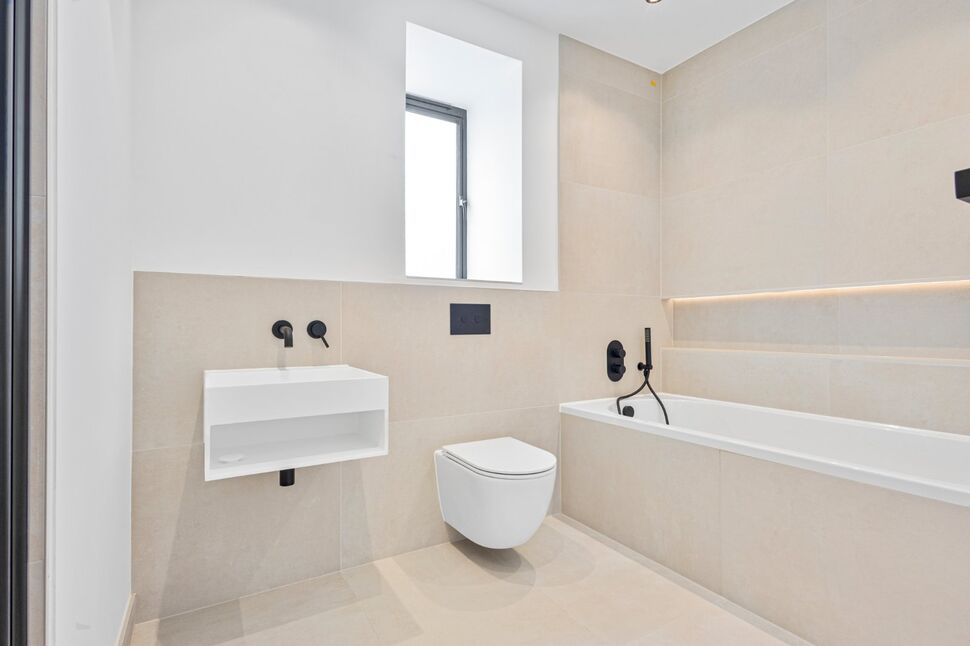 The daring design concept continues with artfully curated bedrooms which are both of a good size offering an abundance of light. Complemented by the exquisitely modern bathroom and en-suite boasting Lusso white suites and gunmetal and matte black fittings, they are both elegant and practical. The main bedroom is a lavish space, ideal for relaxing after a long day, thanks to the separate dressing room and a luxurious en-suite shower room.
