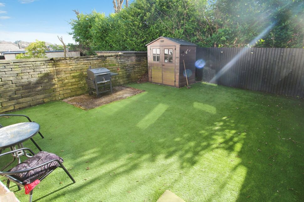 Set back from the road-side with access via the neighbouring property, an enclosed lawn garden extends from the property and includes a timber shed.