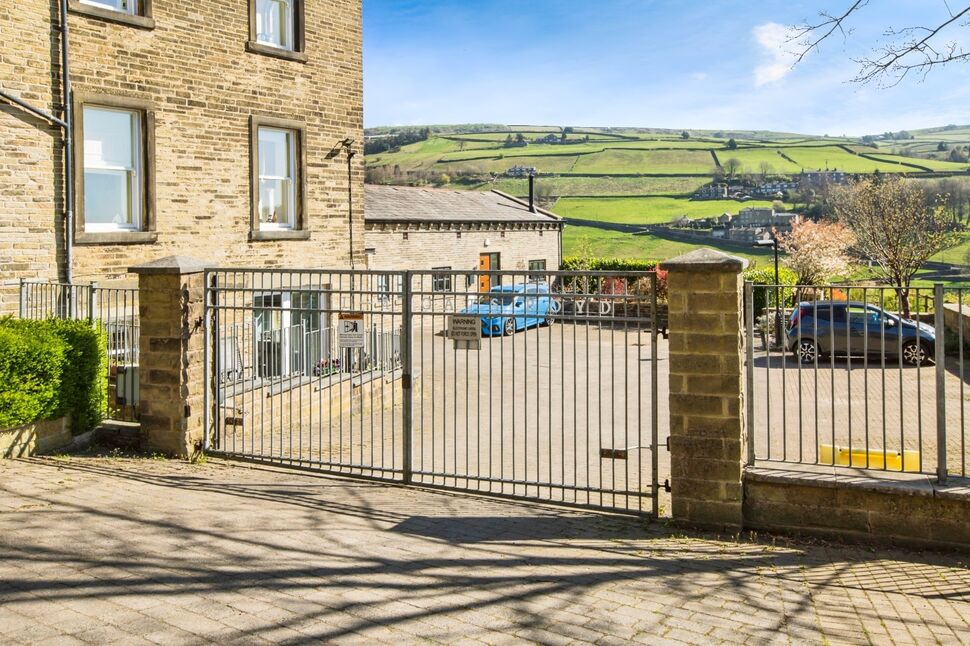Located within the secure gated development of Oats Royd Mill, this stylish two bedroom ground floor apartment is spacious and very well presented. Alongside stunning countryside views across the Luddenden Valley to both the front and side aspect of the property, and the benefit of a garage and visitor parking spaces. Set over one level, the accommodation opens from the private car park, into a large entrance hall extending towards the living area. The spacious living room has ample space for a dining area and has the kitchen at the rear of the property. Along the hallway there is a double second bedroom as well as a bathroom and main bedroom with en-suite. Outside, there is a private and self contained garden with mature hedge and walled boundary along with patio and an ample seating area.