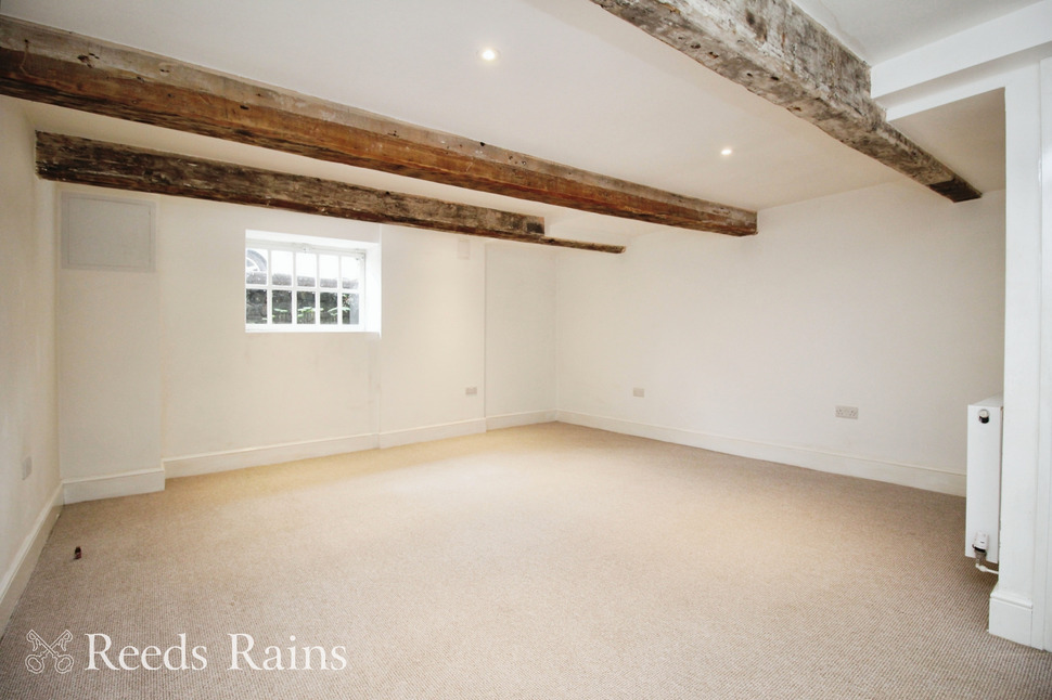 Central heating radiator. Inset spotlighting. Beamed ceiling. Window to front