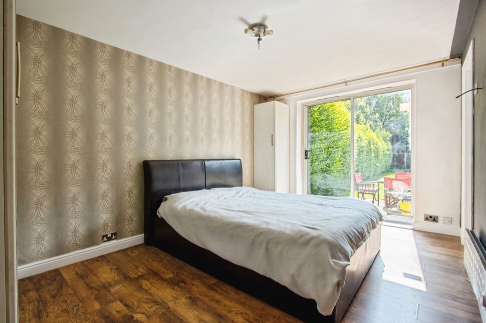 The property benefits from a generously sized rear garden, mainly laid to lawn, providing a pleasant outdoor space.