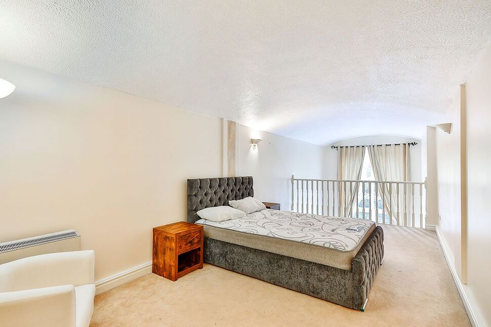 This first floor bedroom is a decent sized room with a mezzanine style balcony over looking the lounge. There is a electric wall heater,