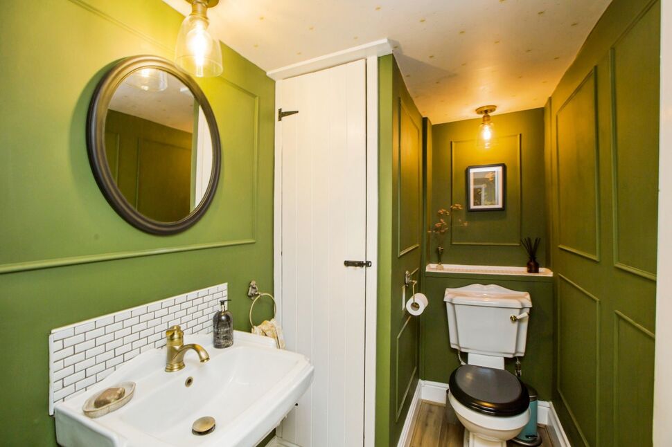 Located just off the first-floor landing is a wc with low level wc, sink unit and doorway to ladder leading up on to the flat roof space.