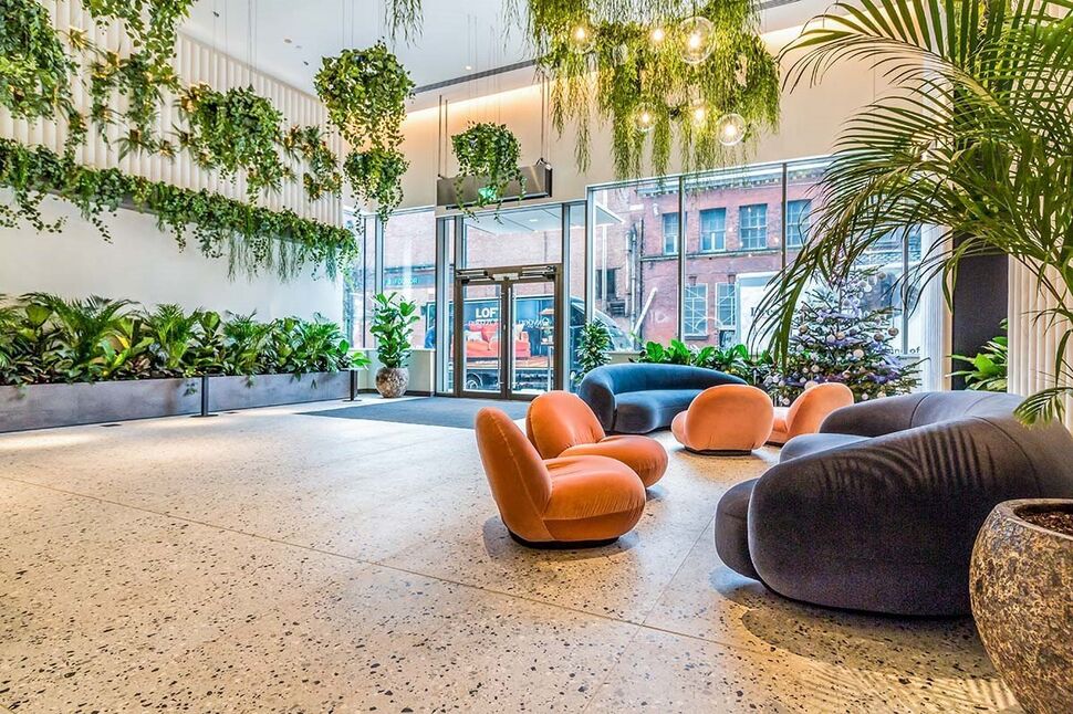 Secure entrance at ground level into an impressive hotel-style lobby area with concierge desk. The apartment is accessible via multiple lifts or stairs.