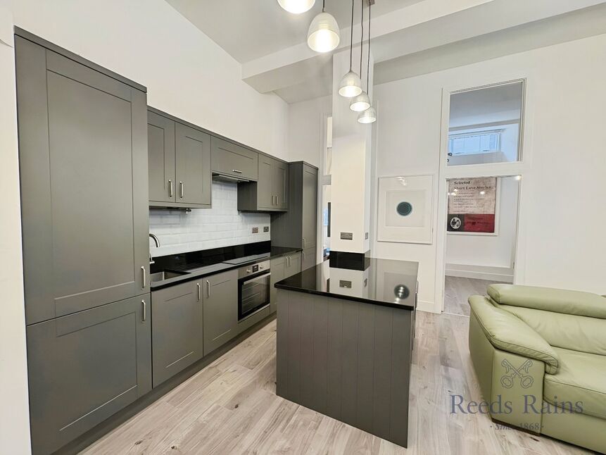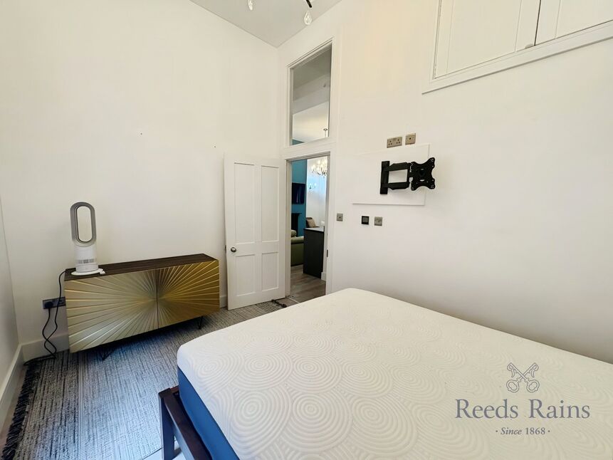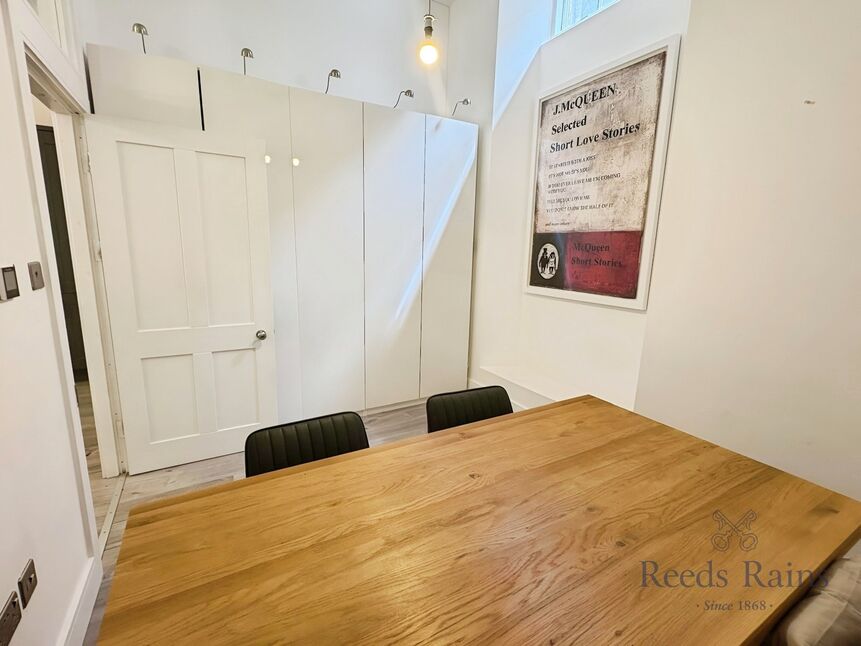 This wonderful property plays host to an inviting entrance into the contemporary, open plan living space, with high ceilings and a Juliet Balcony into the bright, spacious communal atrium. The property has undergone extensive renovation by the previous owner with a fully integrated and fitted kitchen, including a boiling water tap, and has a sociable island with mountains of storage. The property also two double bedrooms, the main with large window and huge storage space above the bathroom, with the second bedroom having space for large double door wardrobes and currently used as a second reception area.