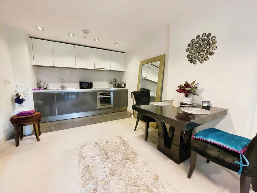 The flat has been meticulously designed to maximise space and functionality. The main living area comprises one generously sized reception room, creating an ideal environment for relaxation or entertaining guests. The layout promotes seamless integration with the kitchen area, which has been fitted with modern appliances and built to a high standard.