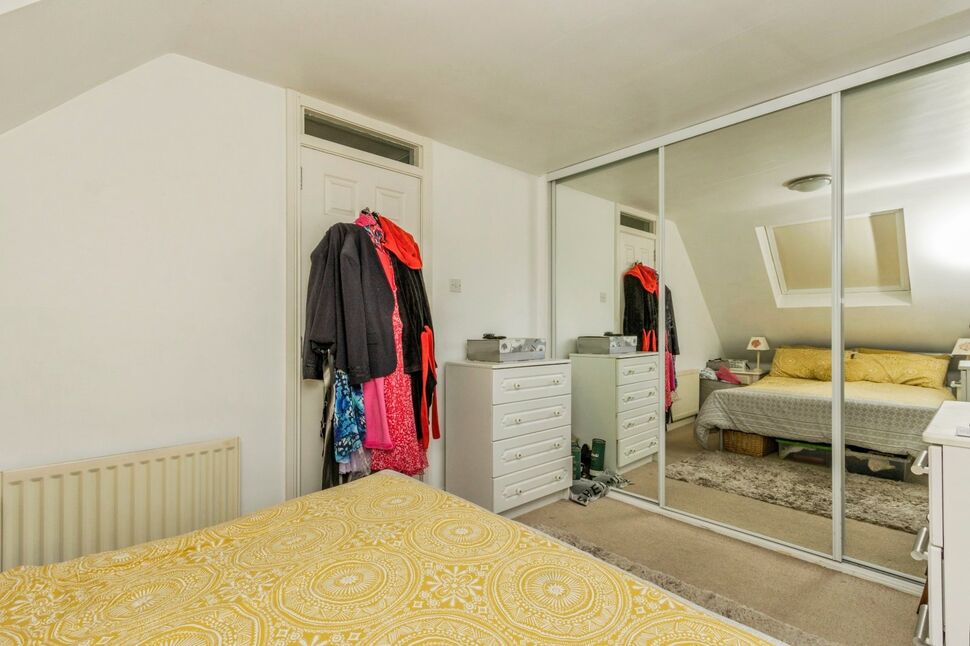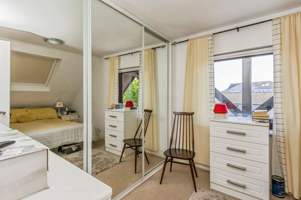 Velux window, wall to wall fitted wardrobes with mirrored sliding doors.