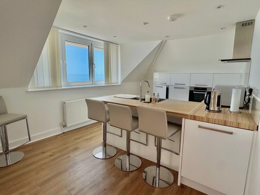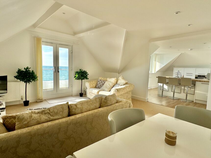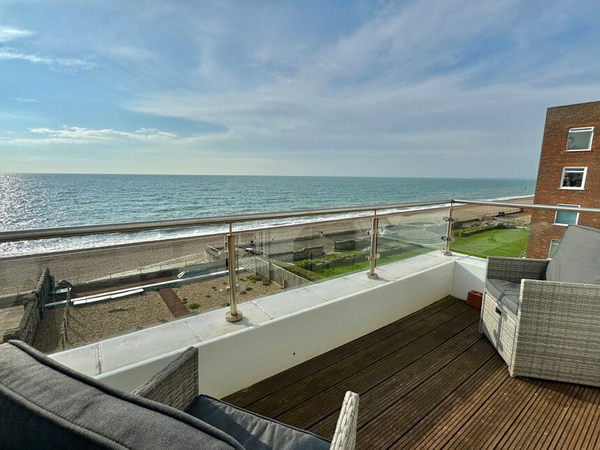 A stunning top floor apartment located in a highly sought after BEACH FRONT location within the Sandgate Riviera. The immaculately presented apartment occupies the top floor commanding spectacular beach and SEA VIEWS with wonderful south facing PRIVATE BALCONY. The occupation offers a bright and airy open plan kitchen/living room with French doors out the to balcony from the living are and a large window offering direct beach and sea views. Further accommodation includes two double bedrooms with fitted wardrobes and an en-suite to the main bedroom in additional to the family bathroom. Other benefits include ALLOCATED PARKING; a SHARE OF THE FREEHOLD;a useful basement storage area and a communal garden area with direct personal access on to the promenade and beach front. Internal viewing comes highly recommended to fully appreciate all this exceptional apartment has to offer.