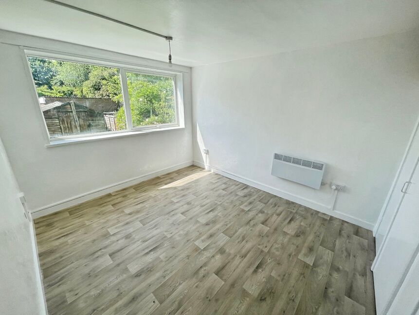 Newly fitted base and wall units, electric oven, hob and extraction, sink, drawers and working surfaces, space for washing machine and fridge freezer, window to front.
