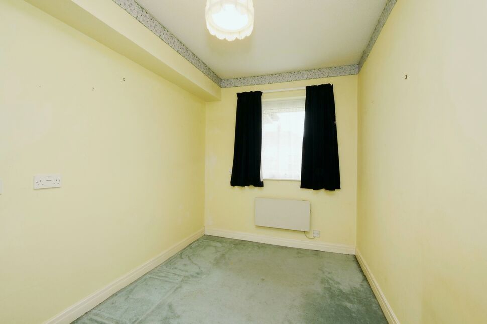 Built-in wardrobes with hanging rail, drawers and shelf above. Storage heater. Emergency pull cord.