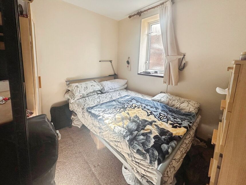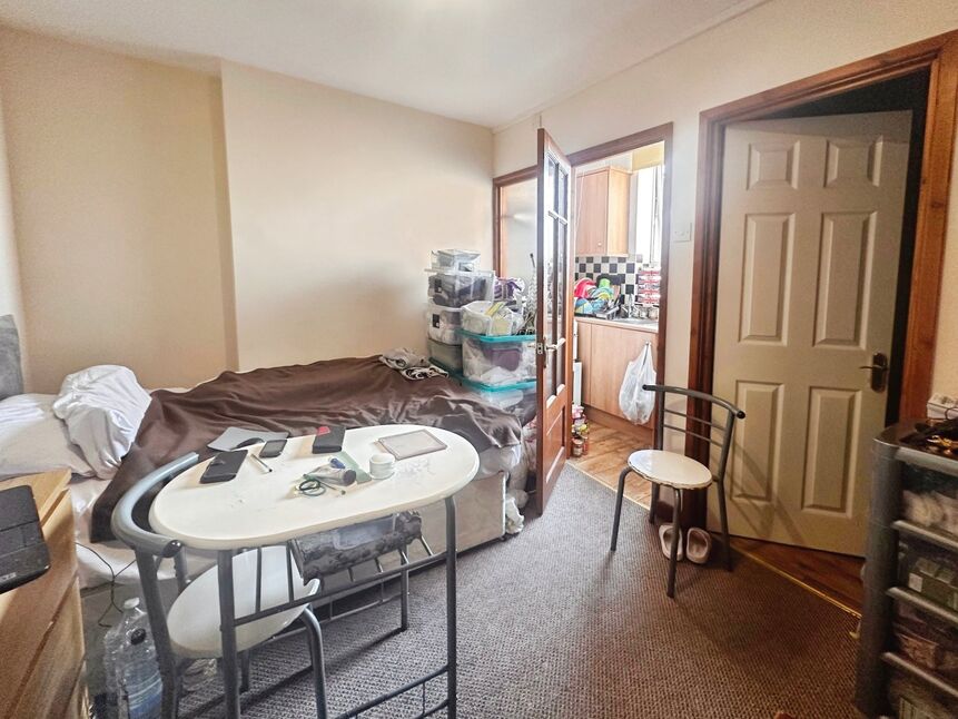 A small one-bedroom flat with a separate bedroom, kitchenette, and a private bathroom. Ideal for a single tenant.