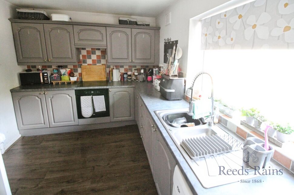 This open plan aspect to the rear elevation consists of a comprehensive range of base and wall units with work surface over and inset one and a half bowl sink unit with drainer, integrated appliances consist of electric oven, four ring hob and extractor hood over, space and plumbing for washing machine and fridge freezer, complementary wall tiling around units, double glazed window to the rear elevation over looking the garden, wall mounted gas central heating boiler, space for dining furniture, radiator and double glazed door to the rear allowing access to the garden.