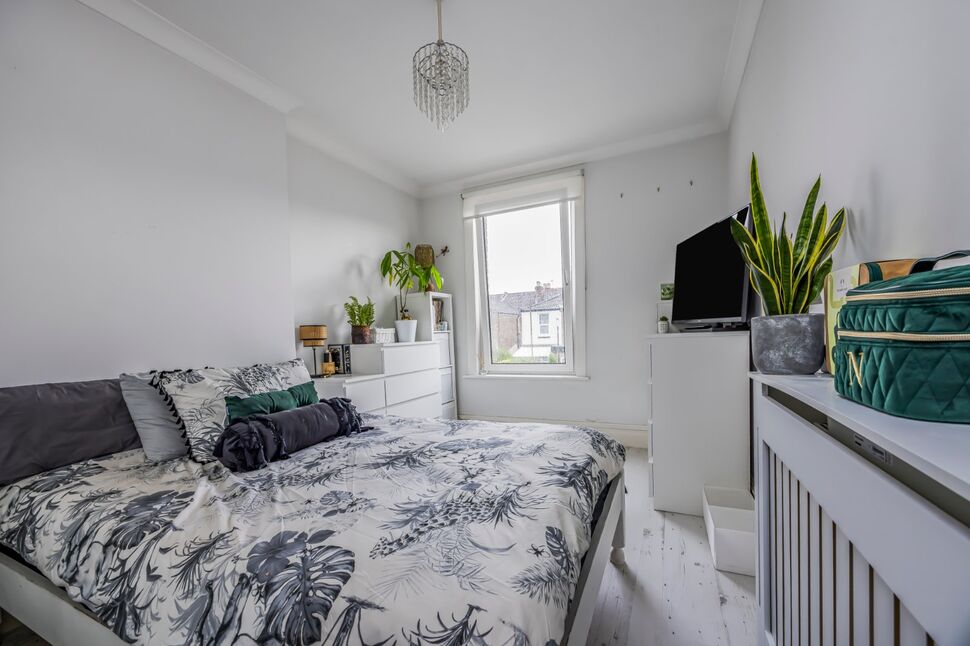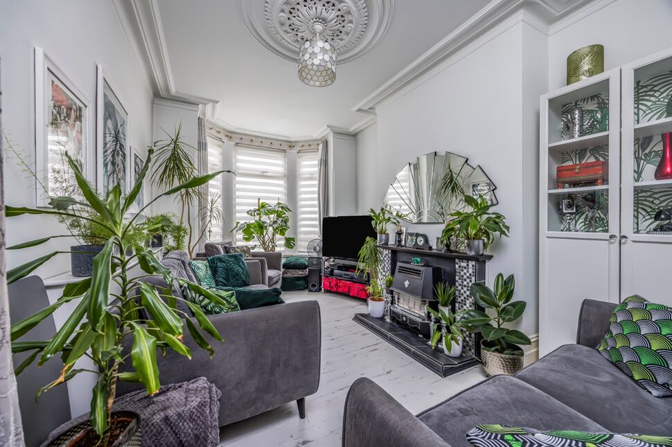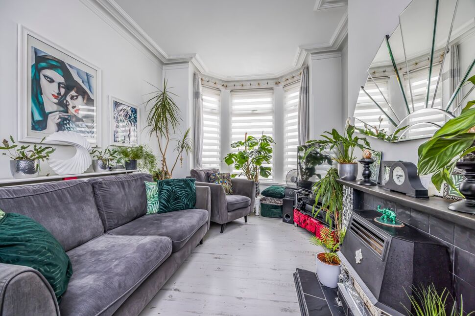 A great size room with white flooring, bay window to front elevation, ceiling rose and fireplace.