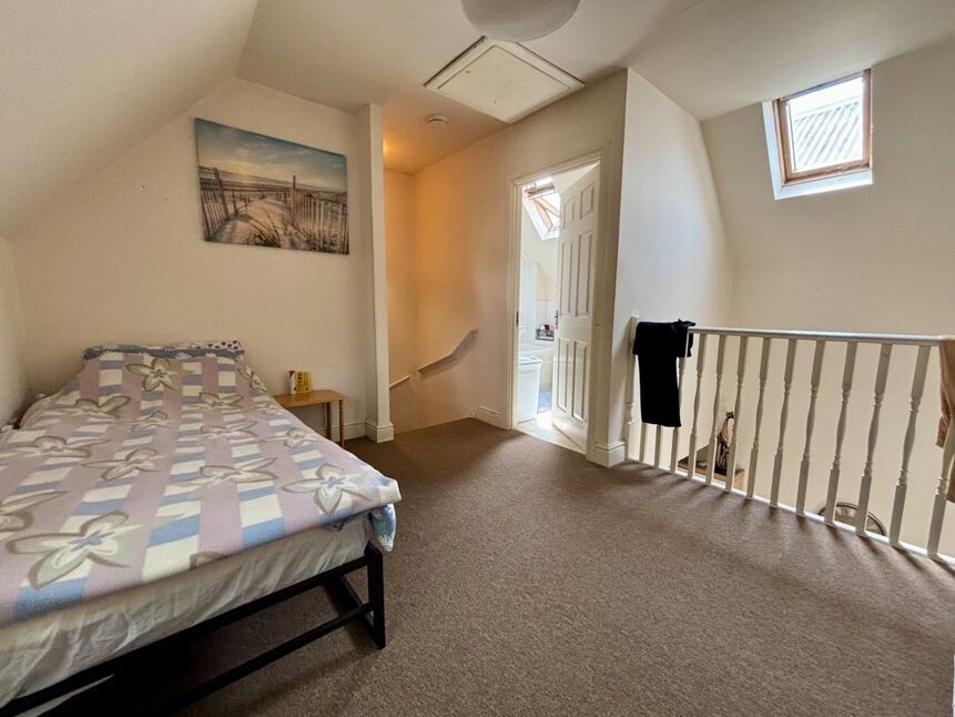To the first floor is the spacious double bedroom and en-suite bathroom.