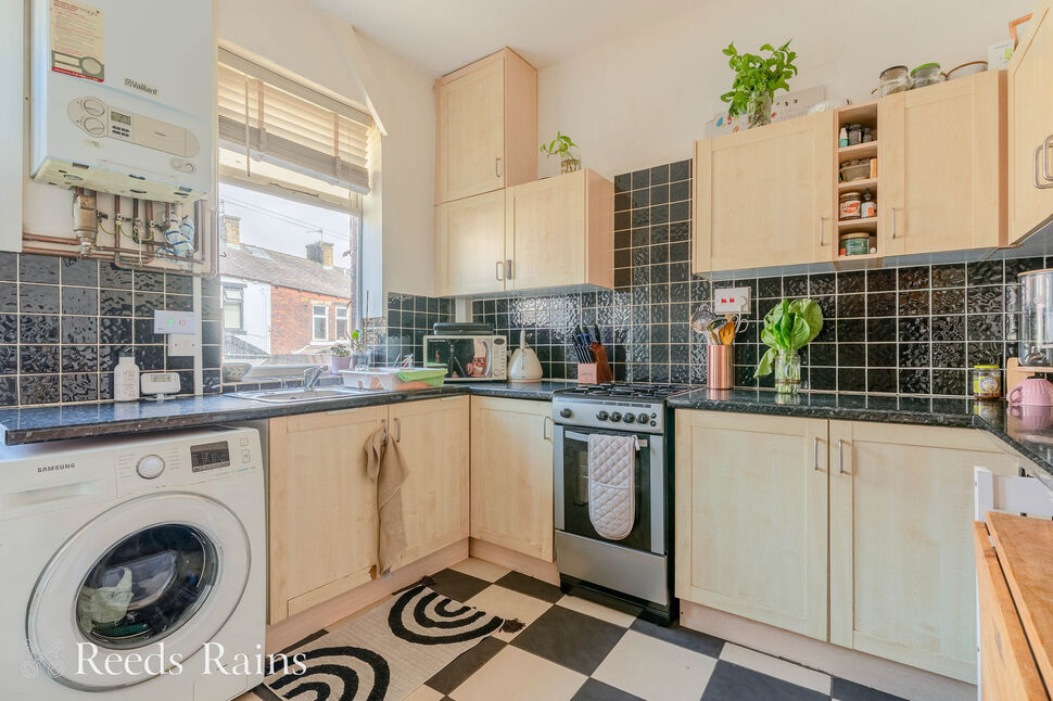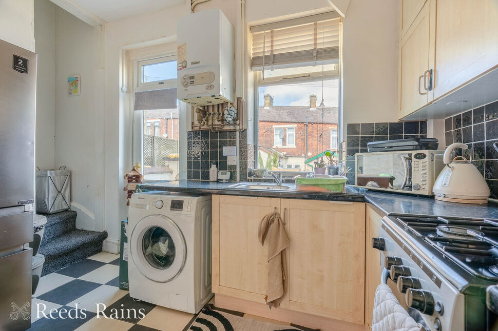 Double glazing to the rear, understairs cupboard, a range of base and wall units with complementary worktop stainless steel sink with mixer tap, plumbing for washing machine, gas point, splash back tiling and boiler.