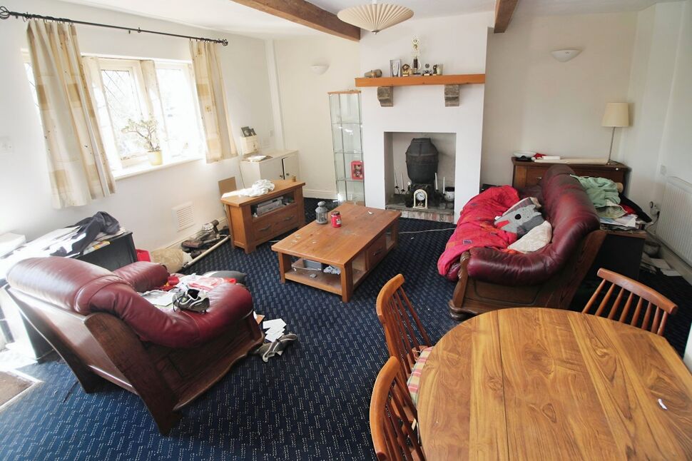 A spacious Reception Room featuring a Wood burning stove recessed to the chimney, two double radiators and a single glazed mullion style window. A staircase rises to the first floor creating a useful understairs store.