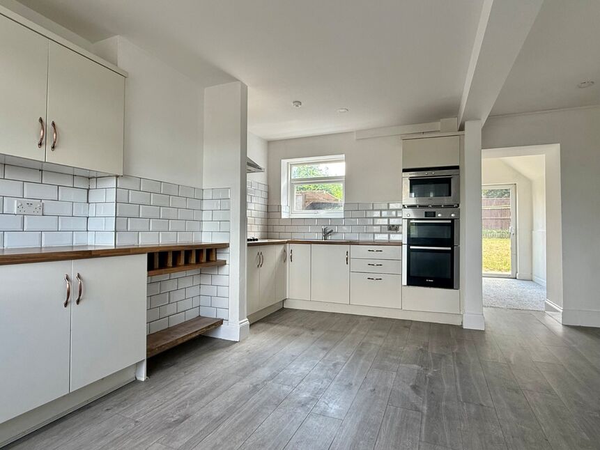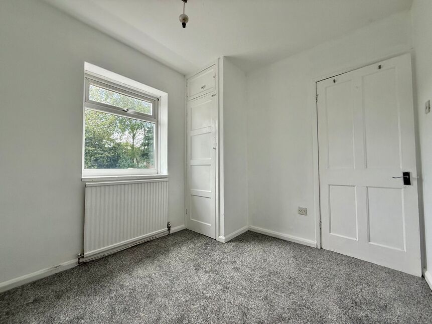 Upstairs, the home features three bedrooms. The bedrooms offer options for children’s rooms, guest accommodation, or home working. All rooms are neutrally decorated, providing a fresh backdrop for future styling.