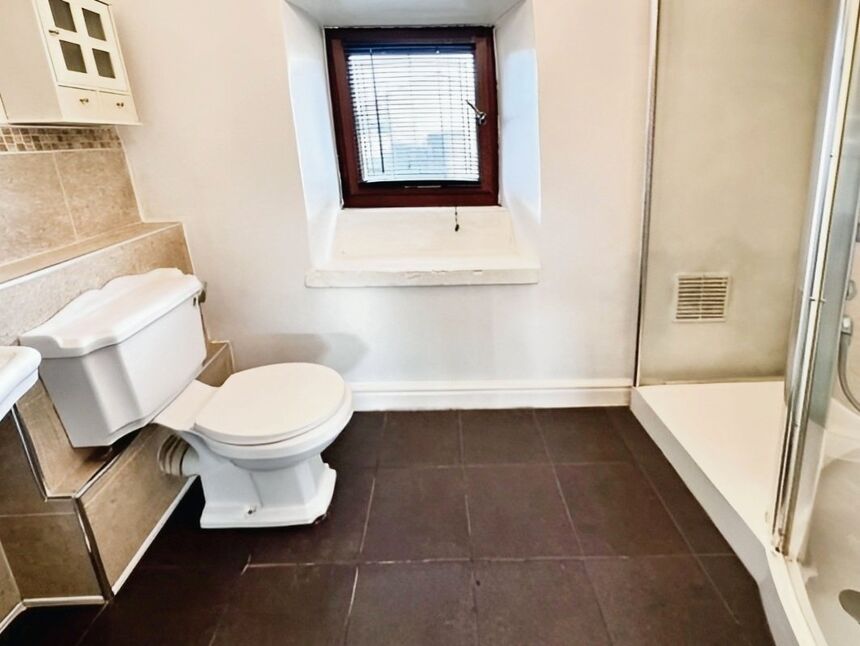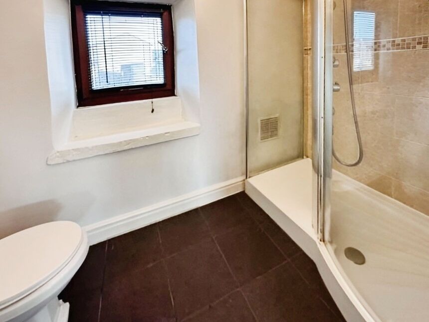 Double glazing to the rear, part tiled walls, heated towel rail and w.c.