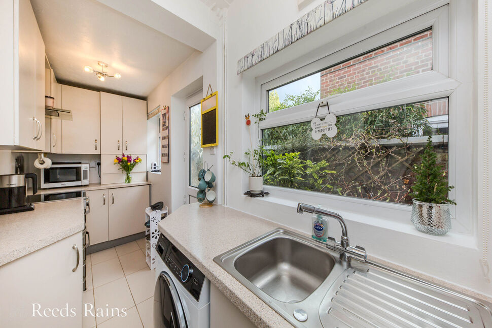 Two PVCu double glazed windows and a PVCu frosted double glazed rear access door.Modern range of wall, drawer and base units with work surfaces that incorporate a stainless steel sink with mixer tap.Stainless steel extractor hood with space beneath for a free standing cooker.Built in fridge. Space and plumbing for a washing machine.Radiator. Underfloor heating. Tiled floor.