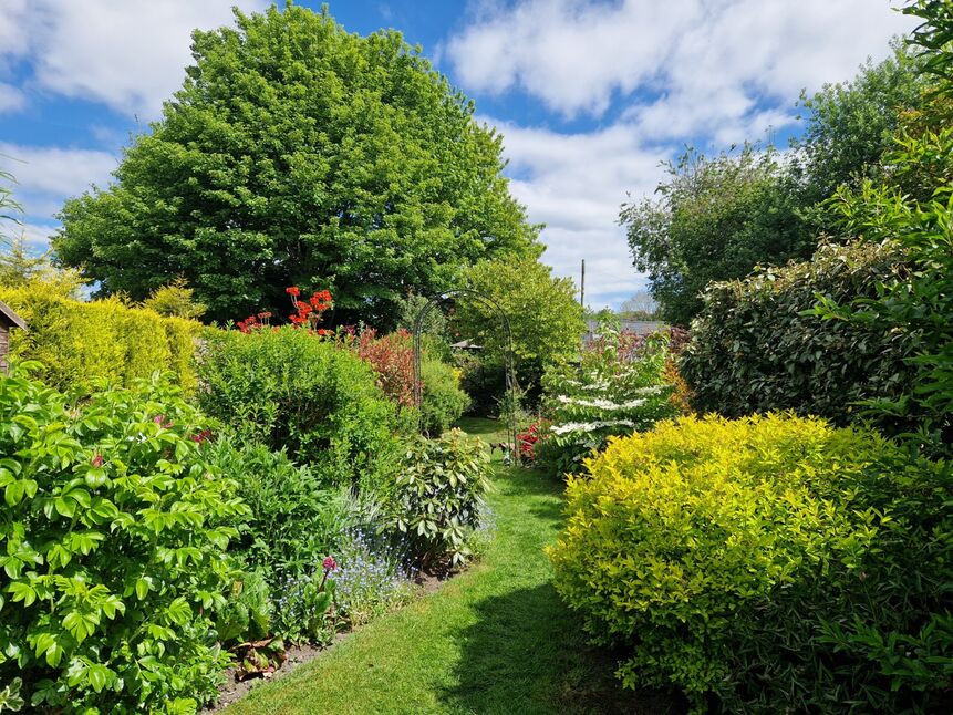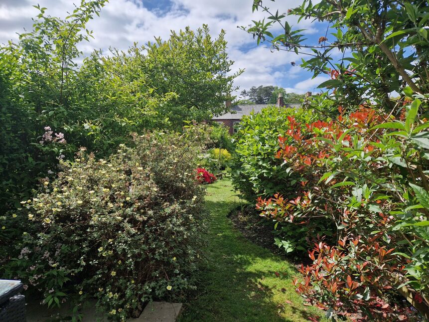 Forecourt with a blue block paved pathway and border.Gravelled rear yard with a large detached garden laid to lawn with intertwining herbaceous borders, porcelain patio, stone patio and gazebo (which enjoys great degree of privacy).