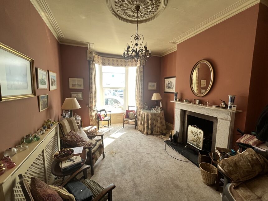 Bay windowed sitting room with original features include fireplace and bay window to front aspect.