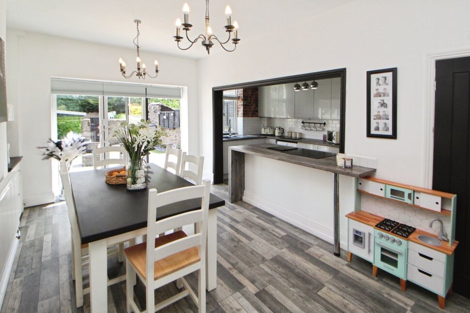 A spacious room with bi fold doors opening on to the garden and opening to the lounge.