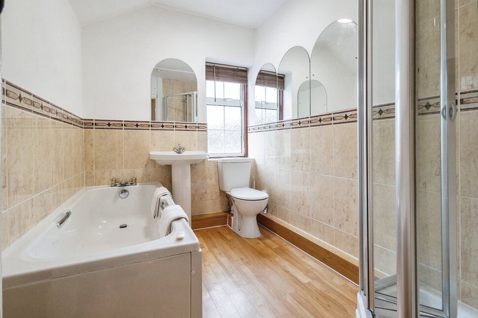 Large enough to accommodate a 4 piece suite the bathroom includes a panelled bath and separate shower, wc and wash basin.