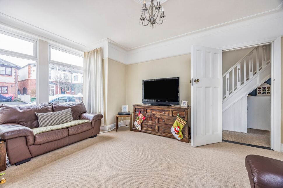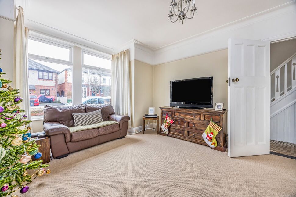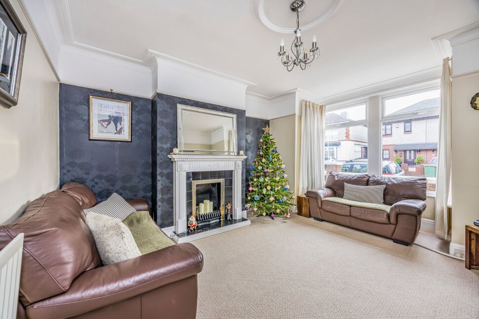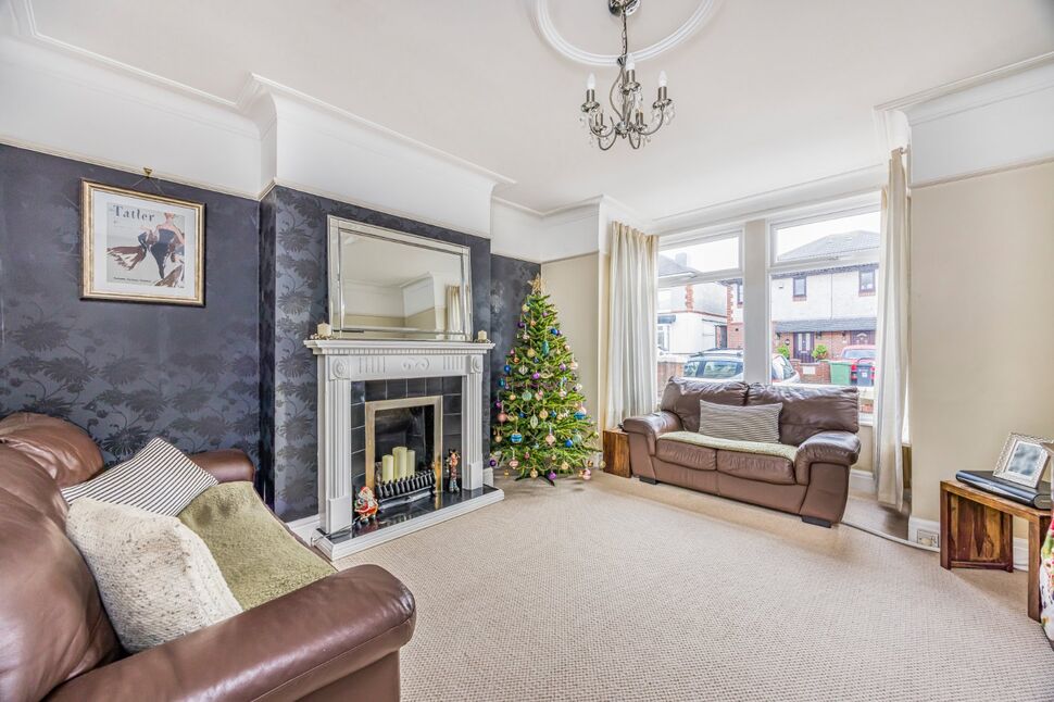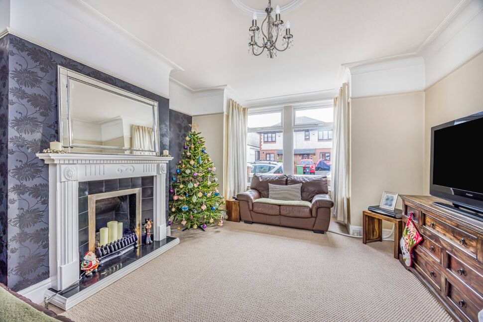 Square bay window to front elevation. A striking decorate wall with fireplace. More then enough space for sofas and coffee tables.