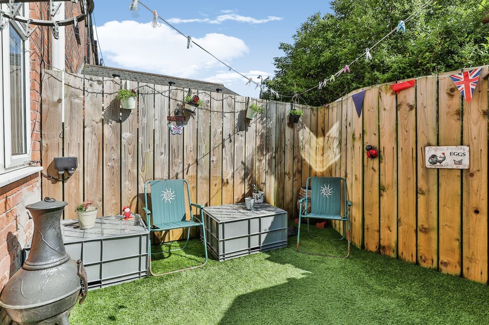 The front of the property is street facing with the rear of the property offering a small rear yard area with artificial grass and a timber built shed
