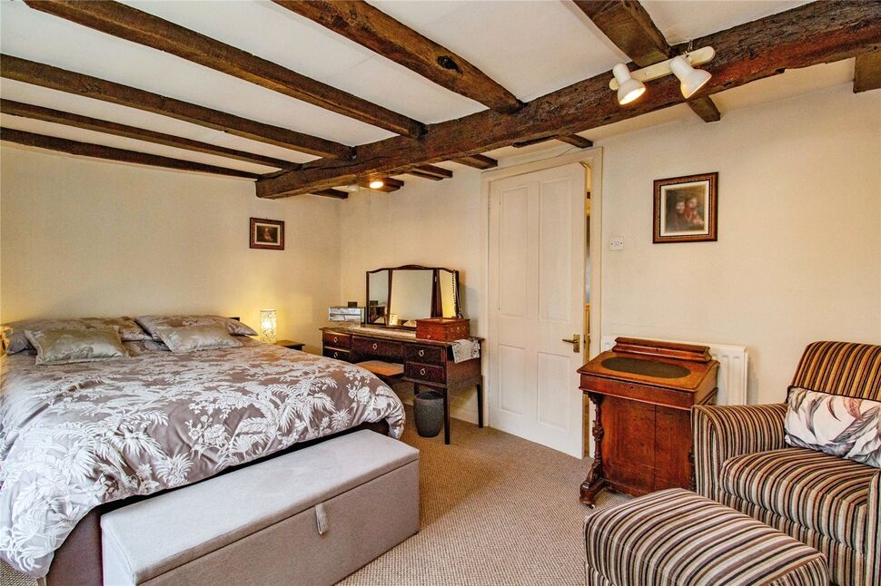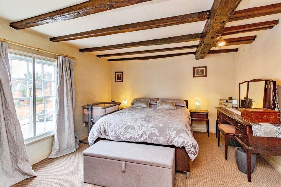 Bedroom two is situated at the front of the property, the spacious double room effortlessly mirrors the character and charm of the property. Featuring carpeted flooring and original sash windows enhanced with secondary glazing, this bedroom offers both warmth and tranquillity. Period-style fitted wardrobes provide ample storage, while exposed beams add a touch of character, making this room an inviting retreat to unwind.