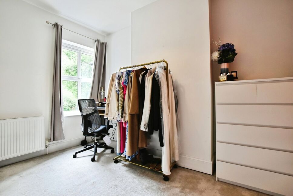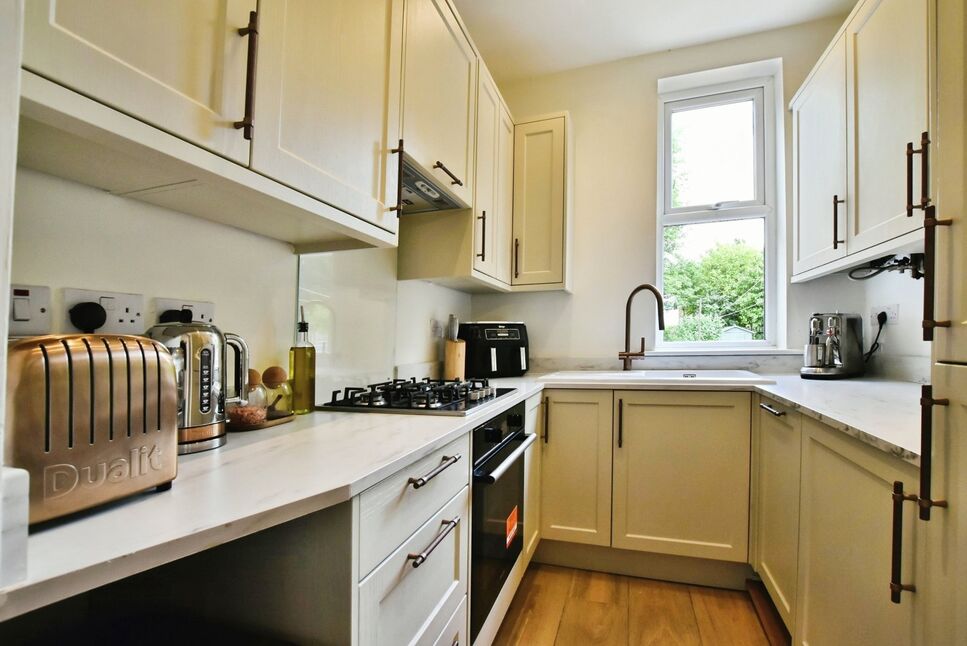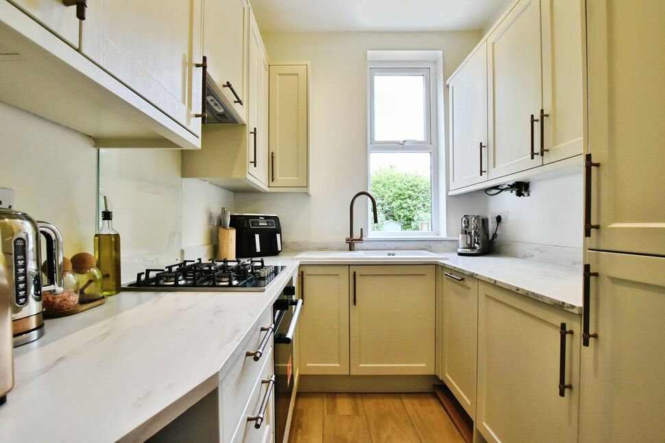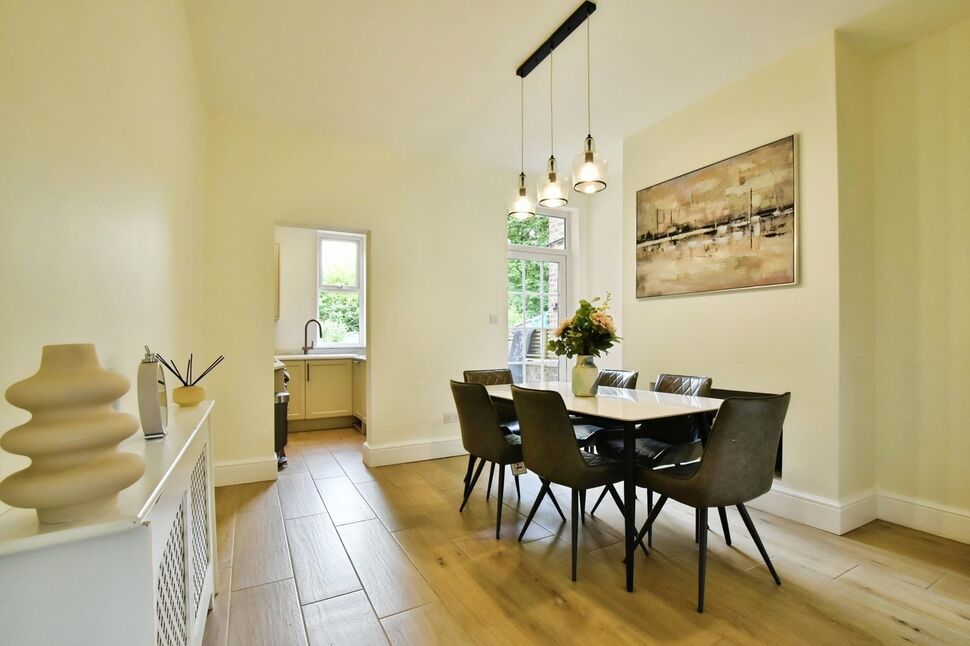 The property boasts two separate reception rooms. The first reception room is stunningly decorated in neutral tones, flooded with natural light through its large window.The second reception room boasts a view of the garden with direct access to the kitchen, perfect for hosting and relaxation