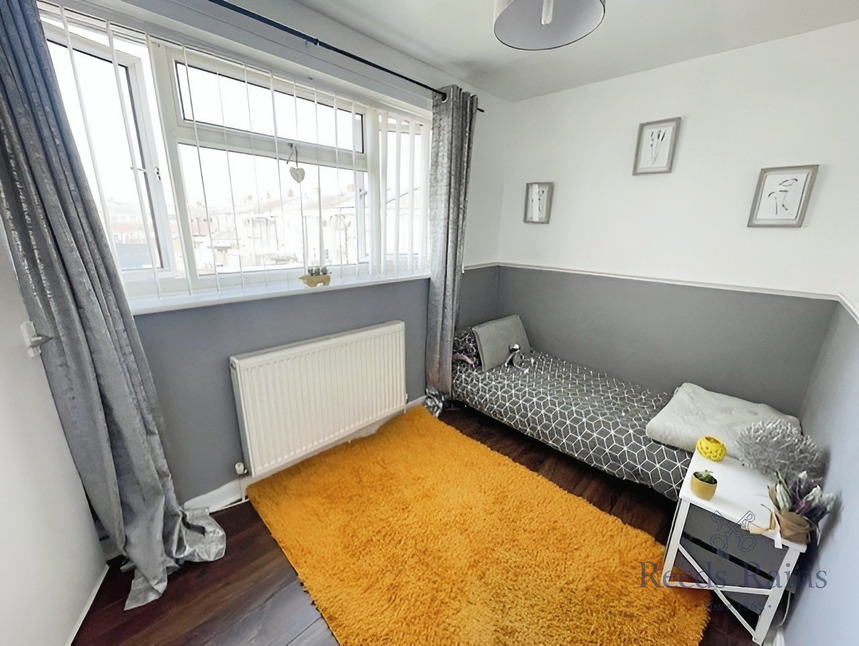 A double bedroom features a uPVC double glazed window to the front elevation, laminate flooring and a radiator.
